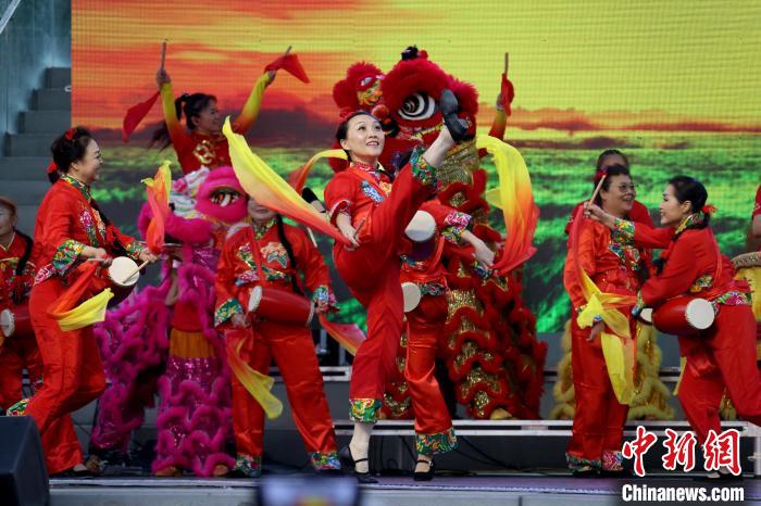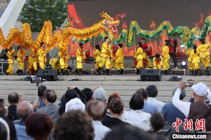 當(dāng)?shù)貢r(shí)間9月1日,加拿大多倫多,中國傳統(tǒng)舞龍?jiān)诘谒膶谬埼幕?jié)開幕式上登臺表演。 中新社記者 余瑞冬 攝