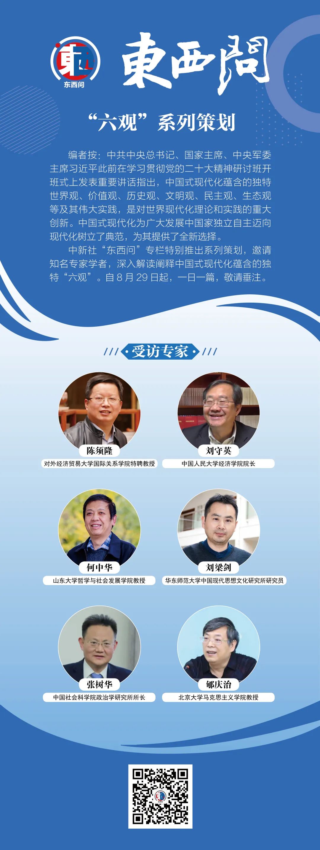 中新社“東西問”專欄特別推出系列策劃,邀請(qǐng)知名專家學(xué)者,深入解讀闡釋中國式現(xiàn)代化蘊(yùn)含的獨(dú)特“六觀”。 8月29日起播發(fā),一天一篇,敬請(qǐng)垂注。