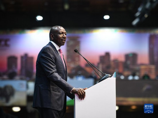 9月4日,肯尼亞總統(tǒng)魯托在內羅畢舉行的首屆非洲氣候峰會開幕式上致辭。新華社記者韓旭攝