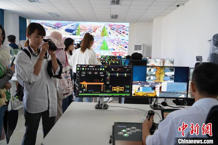 “像抓娃娃一樣”“操作桿仿佛游戲手柄”......看著工作人員在電腦上遠(yuǎn)程操控自動(dòng)化龍門吊,多位臺(tái)灣媒體人感慨,“黑科技”讓操控?cái)?shù)噸重的集裝箱舉重若輕。