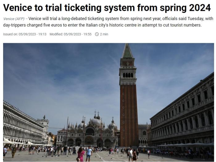 據(jù)報道,當(dāng)天,威尼斯市議會行政官員宣布同意購票入城制試運(yùn)行30天,且試運(yùn)行日期會分散在2024年春夏的法定節(jié)假日和周末。