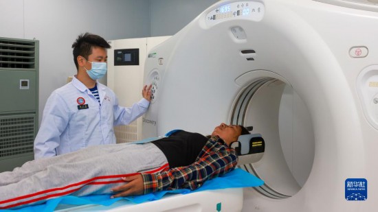 中國海軍“和平方舟”號醫(yī)院船訪問東帝汶并開展醫(yī)療服務期間,醫(yī)院船醫(yī)護人員為當地民眾進行CT檢查(9月6日攝)。新華社發(fā)(陳云飛 攝)