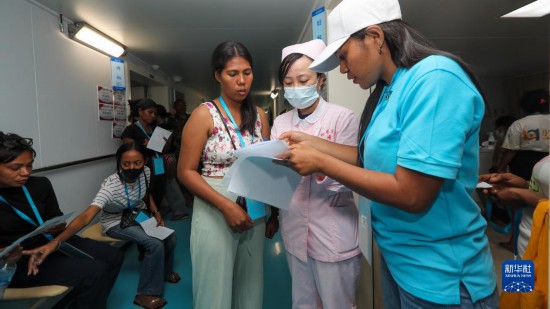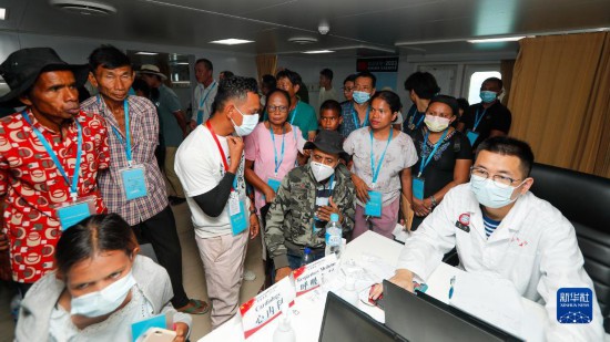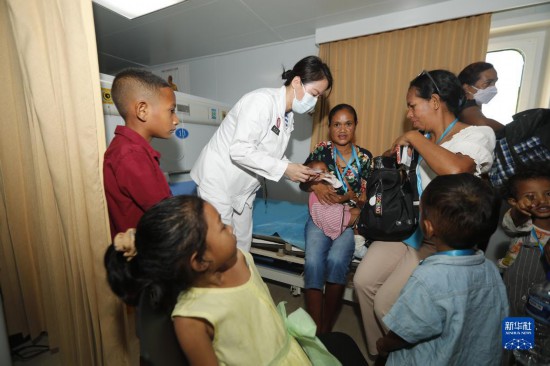 中國海軍“和平方舟”號醫(yī)院船訪問東帝汶并開展醫(yī)療服務期間,醫(yī)院船醫(yī)護人員為當地民眾提供醫(yī)療服務(9月8日攝)。新華社發(fā)(黎宇 攝)