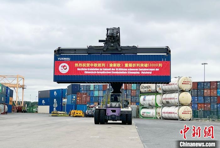 2022年7月11日,中歐班列(重慶)第一萬(wàn)列重箱折列抵達(dá)杜伊斯堡港接車(chē)儀式在杜伊斯堡港碼頭舉行。中新社記者 馬秀秀 攝