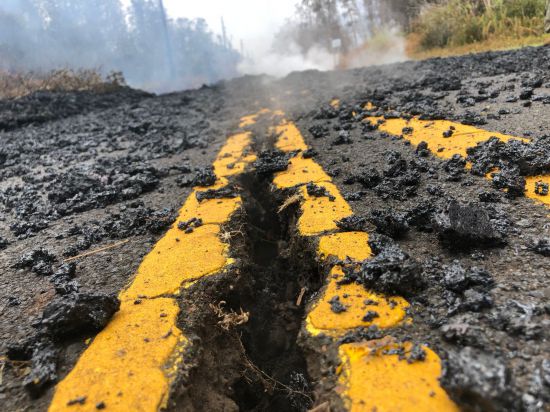 2018年5月9日,在美國夏威夷帕霍阿鎮(zhèn)附近的“莉拉妮地產(chǎn)”居民區(qū),火山活動(dòng)造成地面出現(xiàn)裂縫。新華社記者陶希夷攝