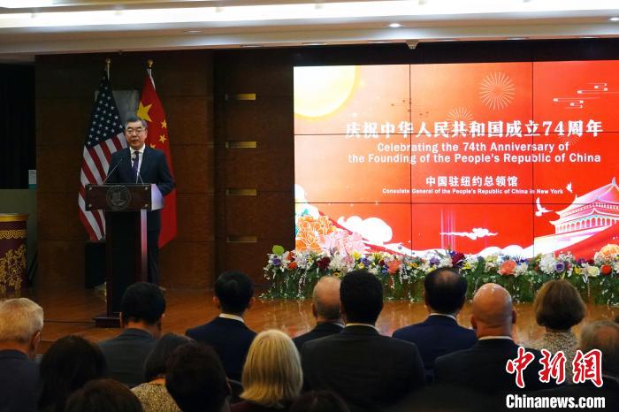 中新社紐約9月14日電 (記者 王帆)中國駐紐約總領(lǐng)館當(dāng)?shù)貢r間13日晚在紐約舉行慶祝中華人民共和國成立74周年招待會,領(lǐng)區(qū)政商學(xué)媒等各界代表近400人出席。