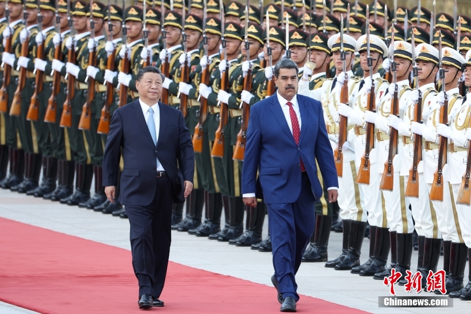 9月13日下午,中國國家主席習近平在北京人民大會堂同來華進行國事訪問的委內瑞拉總統(tǒng)馬杜羅舉行會談。會談前,習近平在人民大會堂東門外廣場為馬杜羅舉行歡迎儀式。中新社記者 盛佳鵬 攝