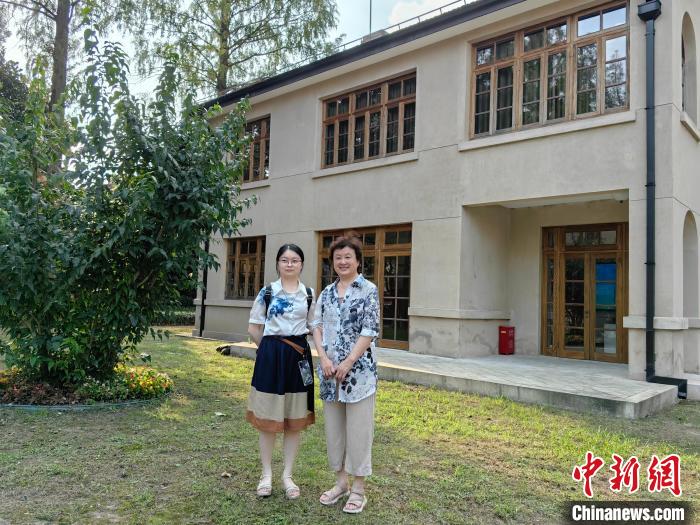 9月18日,談繼東與女兒華瓊在復(fù)旦大學(xué)玖園的談家楨舊居前合影。范宇斌 攝