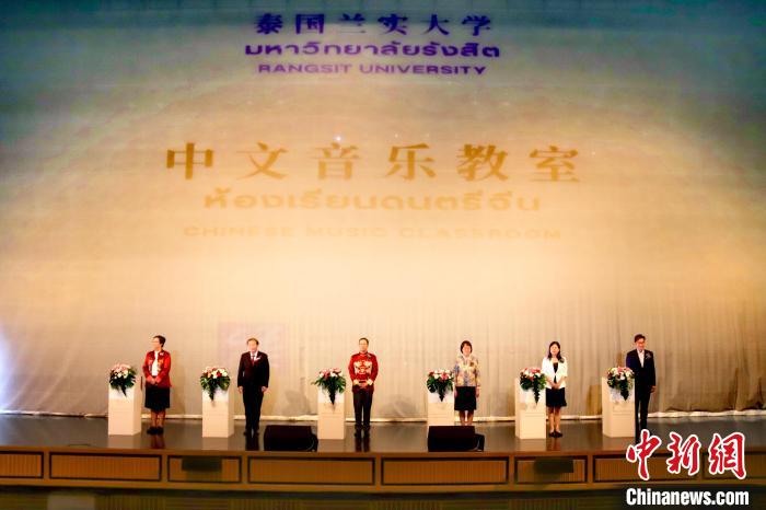 中新網(wǎng)9月21日電(李映民 趙婧楠)泰國蘭實(shí)大學(xué)與中外語言交流合作中心合作設(shè)立的泰國首家“中文音樂教室”19日舉行揭牌典禮。蘭實(shí)大學(xué)校長阿塔威特·烏萊拉、中國駐泰國大使館教育參贊馮俊英、蘭實(shí)大學(xué)文學(xué)院院長潘心媛等出席活動(dòng)并致辭。蘭實(shí)大學(xué)管理層、中外語言交流合作中心代表、泰國各孔子學(xué)院、多所高校師生代表等750人出席活動(dòng)。