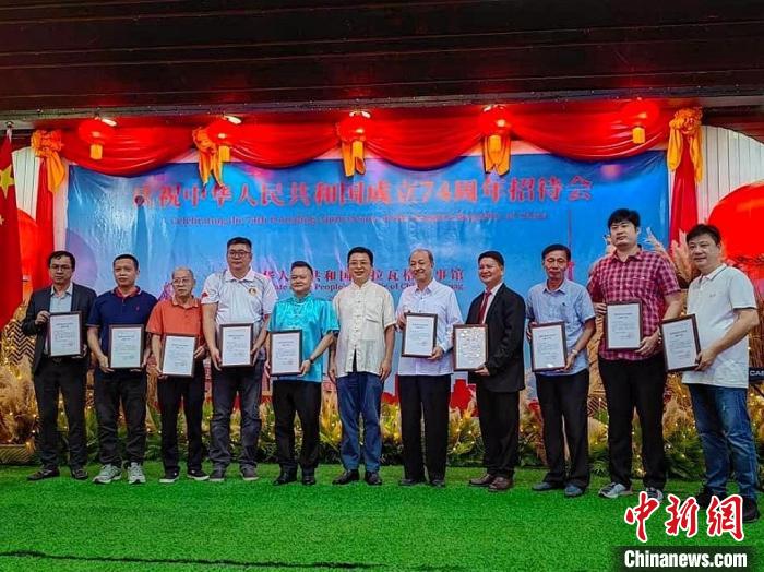 圖為招待會現(xiàn)場舉行領(lǐng)事保護(hù)志愿者頒獎儀式。中國駐拉瓦格領(lǐng)事館供圖