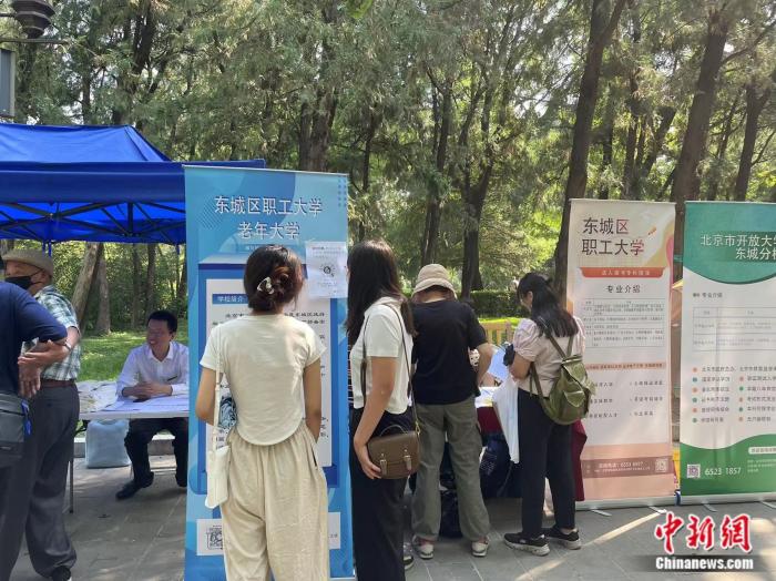不久前,北京地壇書市里設(shè)置的東城區(qū)老年開放大學(xué)招生點(diǎn)位在社交媒體上意外出圈,許多年輕人慕名前去。