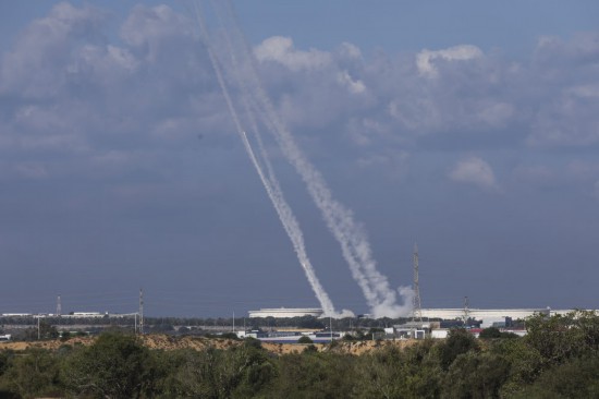 ↑10月7日,在以色列南部城市阿什克隆,以色列“鐵穹”防御系統(tǒng)發(fā)射導彈,攔截從加沙地帶發(fā)射的火箭彈。新華社發(fā)(伊蘭·阿薩亞格攝/基尼圖片社)