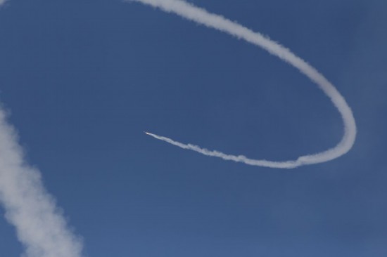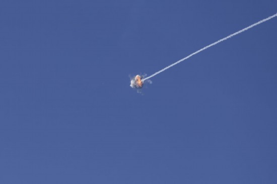 ↑10月7日,在以色列南部城市阿什克隆,以色列“鐵穹”防御系統(tǒng)導彈成功攔截從加沙地帶發(fā)射的火箭彈。新華社發(fā)(伊蘭·阿薩亞格攝/基尼圖片社)