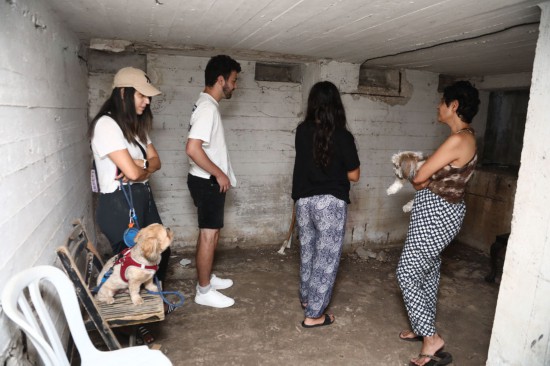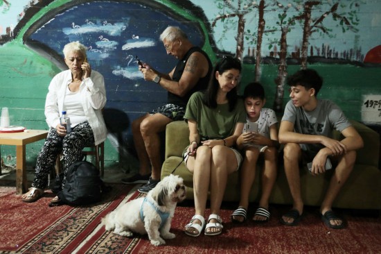 ↑10月7日,防空警報響起后民眾在以色列特拉維夫一處建筑內躲避。新華社發(fā)(吉德翁·馬科維奇攝/基尼圖片社)