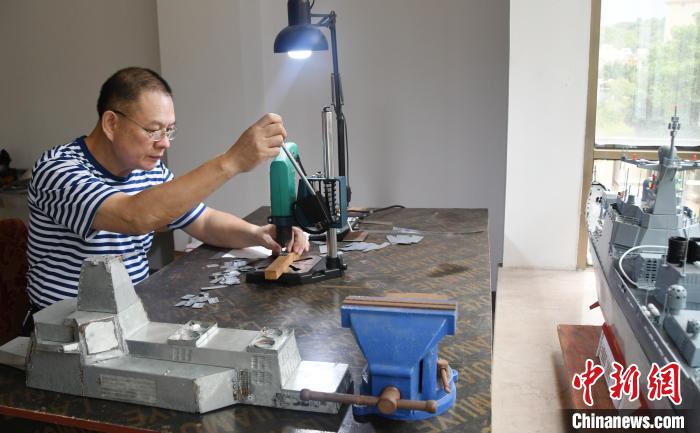 近40年的“造艦”生活,也讓潘雄體會(huì)到許多不易和堅(jiān)守?!白瞿P偷募夹g(shù)對(duì)于建筑出身的我來(lái)說(shuō)不是難題,對(duì)艦船的愛(ài)好和制作模型的耐心才是最重要的。”潘雄稱(chēng),自己剛開(kāi)始制作“昆明號(hào)”驅(qū)逐艦時(shí)并無(wú)多少資料可查,每天下班吃完飯后就在工作臺(tái)上研究艦炮、桅桿、艦島的整合安裝和細(xì)節(jié)對(duì)接,經(jīng)常做著做著就到了凌晨。