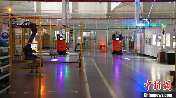 中新社記者近日探訪位于浙江嘉興的敏實集團,在其未來工廠里,機器人于“熄燈車間”來回穿梭?!≈行律缬浾?楊程晨 攝