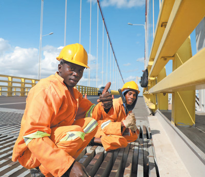 據(jù)介紹,馬普托大橋項(xiàng)目在建設(shè)過程中踐行屬地化經(jīng)營(yíng)理念,建設(shè)最高峰期雇傭當(dāng)?shù)貑T工超過3000人,焊工、車工、鋼筋工、機(jī)械操作手等一大批專業(yè)技術(shù)人員通過大橋項(xiàng)目提升了職業(yè)技能。“在大橋項(xiàng)目上學(xué)到的一技之長(zhǎng)幫我找到了新的工作?!蹦1瓤饲嗄攴茽柕缕湛ㄕ劶霸隈R普托大橋項(xiàng)目工作的收獲,臉上洋溢著幸福的笑容。
