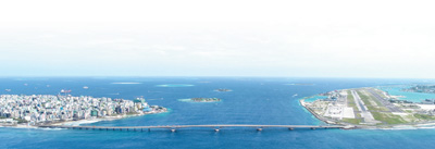 在馬爾代夫航拍的連接首都馬累和機(jī)場(chǎng)島的中馬友誼大橋。