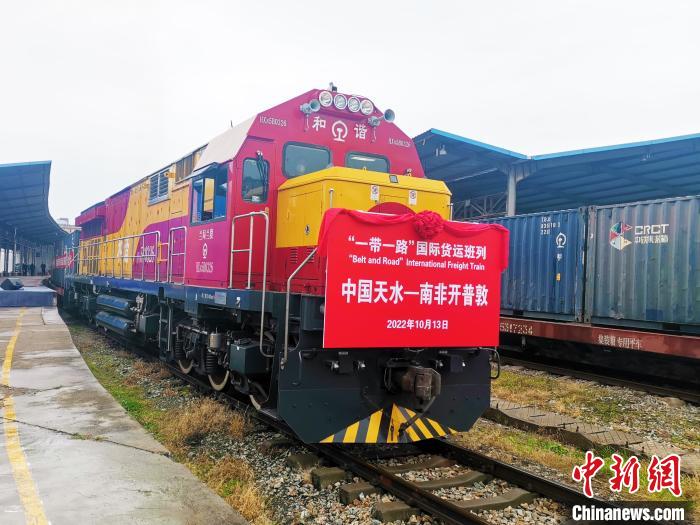 2022年,“中國天水—南非開普敦”國際班列從蘭州駛出?!±钪窘?攝