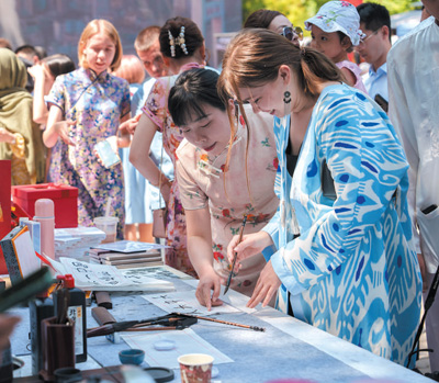 5月,“茶和天下·雅集”活動(dòng)在烏茲別克斯坦首都塔什干舉行,當(dāng)?shù)厥忻裨诨顒?dòng)現(xiàn)場(chǎng)通過(guò)書(shū)法、剪紙和工藝品展示等領(lǐng)略豐富多彩的中國(guó)文化。