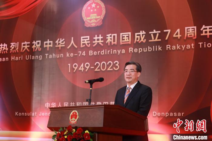 巴厘省省長代表蘇拉加在致辭中對中華人民共和國成立74周年致以熱烈祝賀。他表示,新冠疫情前,中國是巴厘省重要的游客來源國,2019年有118萬中國游客到訪巴厘島。隨著中國上海、廣州、深圳、廈門、香港與巴厘島恢復(fù)直航航班,巴厘島已準(zhǔn)備好迎接越來越多的中國游客。
