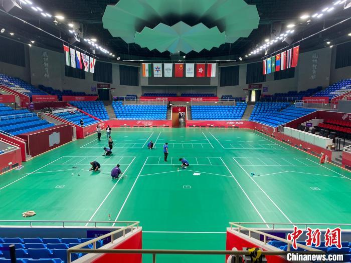杭州體育館正在布置硬地滾球比賽場地。郭天奇攝