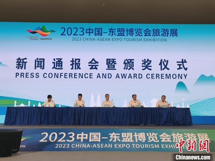 10月15日,2023中國—東盟博覽會旅游展新聞通報會暨頒獎儀式舉行。唐蔚晴 攝