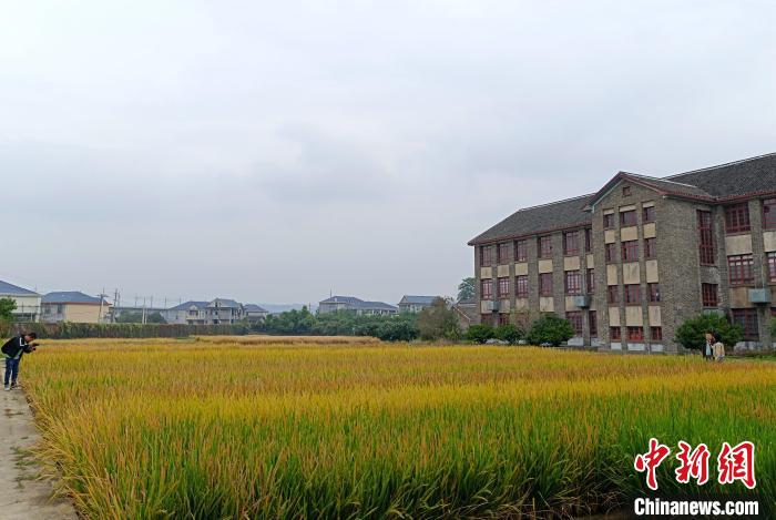 10月13日,安江農(nóng)校紀念園內,袁隆平曾發(fā)現(xiàn)水稻“天然雄性不育株”的試驗田里,金黃的稻穗隨風搖曳。這里如今仍是科研人員開展雜交水稻研究的“陣地”。中新社記者 鄧霞 攝