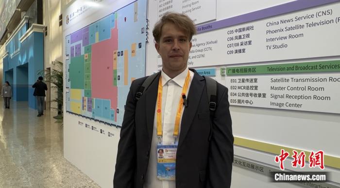 《匈牙利新聞報(bào)》記者馬頓接受中新網(wǎng)記者采訪。 中新網(wǎng)記者 單冰潔 攝