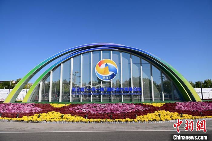10月15日,北京,國(guó)家會(huì)議中心外的第三屆“一帶一路”國(guó)際合作高峰論壇景觀布置。當(dāng)日,位于國(guó)家會(huì)議中心的第三屆“一帶一路”國(guó)際合作高峰論壇新聞中心啟動(dòng)試運(yùn)行。 中新社記者 田雨昊 攝