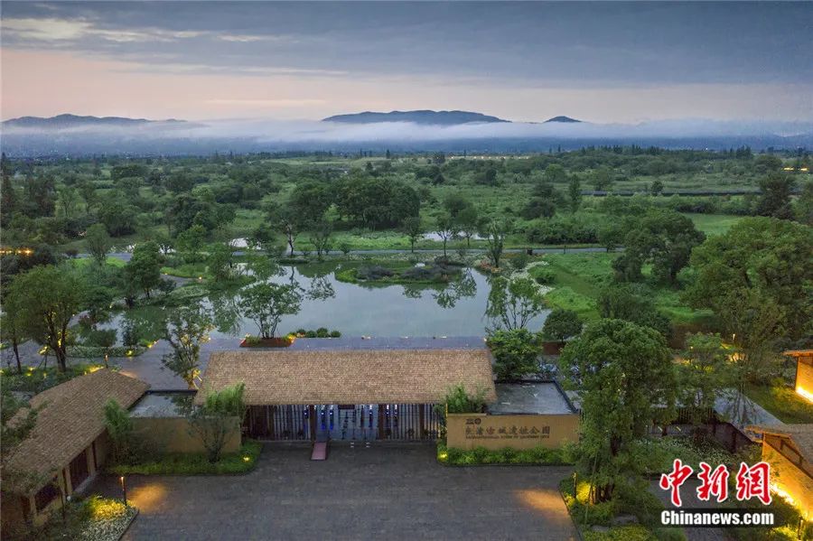 良渚古城遺址公園(無人機(jī)照片)。中新社發(fā) 杭州良渚遺址管理區(qū)管理委員會(huì) 供圖