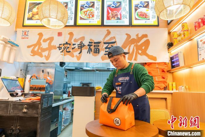 10月22日,臺灣餐飲人葉韋廷在重慶店內(nèi)將美食打包。 中新社記者 鐘旖 攝
