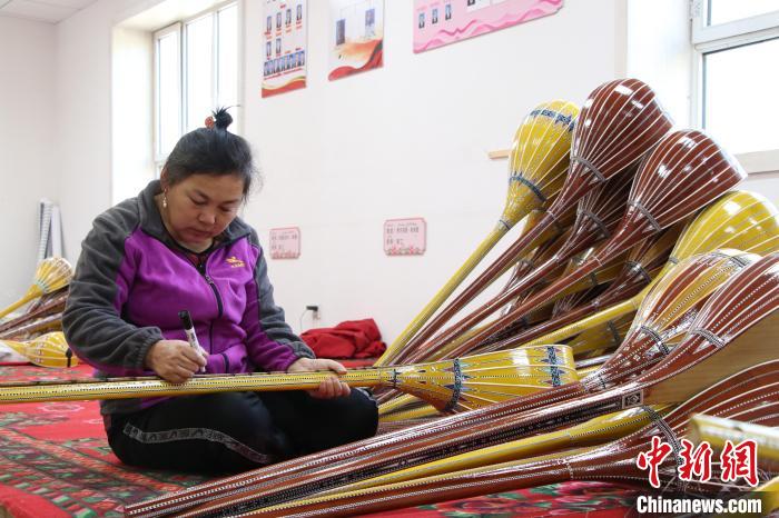 目前,新和縣依其艾日克鎮(zhèn)加依村樂器產(chǎn)業(yè)園內(nèi)共有160余人穩(wěn)定就業(yè),圖為村里的婦女在樂器產(chǎn)業(yè)園工作。茍繼鵬 攝