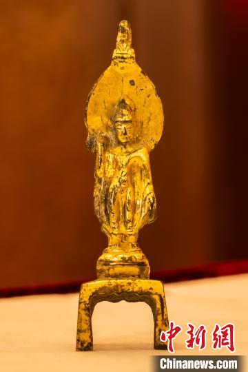 中國(guó)駐澳大利亞大使館舉行儀式,接收澳方向我國(guó)返還共4件流失文物藝術(shù)品與1件古生物化石。圖為隋晚期至唐銅鎏金佛立像?!?guó)家文物局供圖