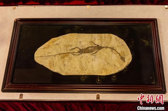 中國(guó)駐澳大利亞大使館舉行儀式,接收澳方向我國(guó)返還共4件流失文物藝術(shù)品與1件古生物化石。圖為晚侏羅世至早白堊世潛龍化石。 國(guó)家文物局供圖