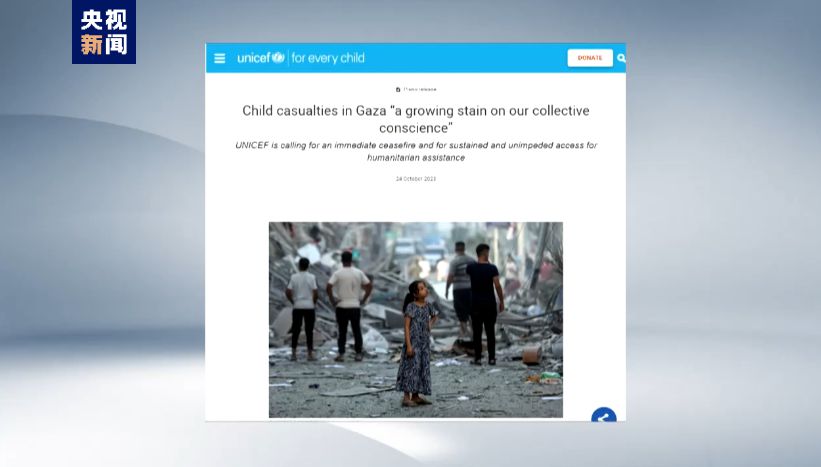 聯合國兒童基金會呼吁沖突各方盡快?;?、允許人道主義救援物資進入加沙。
