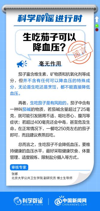 中新網(wǎng)10月25日電 茄子富含維生素、礦物質(zhì)和抗氧化劑等成分,并不含有任何可以降血壓的成分,無(wú)論是生吃還是烹飪,都不能直接降低血壓。(來(lái)源:@科學(xué)辟謠 @中國(guó)新聞網(wǎng))