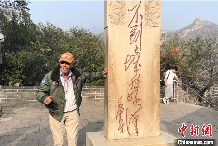 百歲美國(guó)飛虎隊(duì)老兵再登長(zhǎng)城 在“好漢碑”前留影