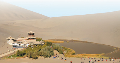 甘肅省敦煌市鳴沙山月牙泉。