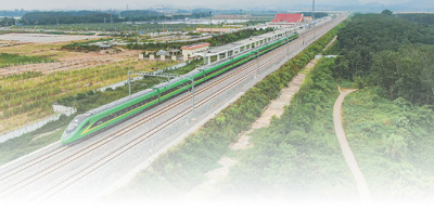 10月22日,動車從中老鐵路橄欖壩站駛出(無人機(jī)照片)。