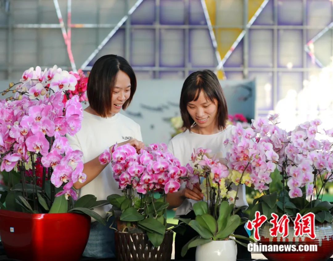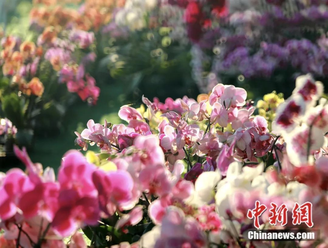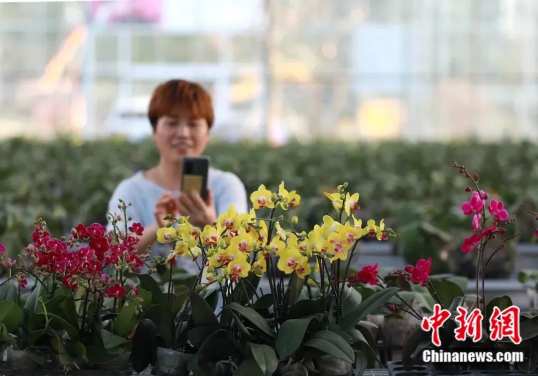32萬平方米的溫室大棚內,不同品種的蘭花競相開放,形成一片蔚為壯觀的蘭花海洋。