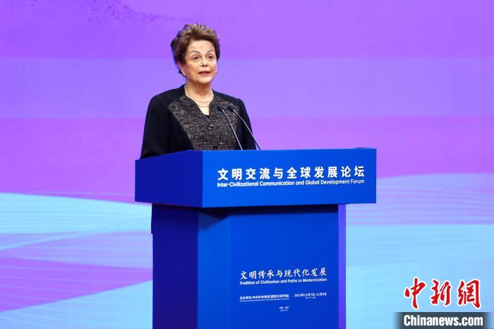 11月7日,由中共中央黨校(國(guó)家行政學(xué)院)主辦的文明交流與全球發(fā)展論壇在京開幕。圖為新開發(fā)銀行行長(zhǎng)羅塞夫作主旨演講。富田 攝