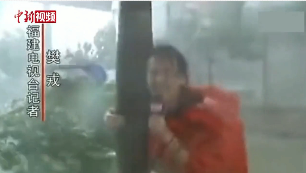 臺(tái)風(fēng)暴雨來襲,他們身體力行,播報(bào)臺(tái)風(fēng)的威力。