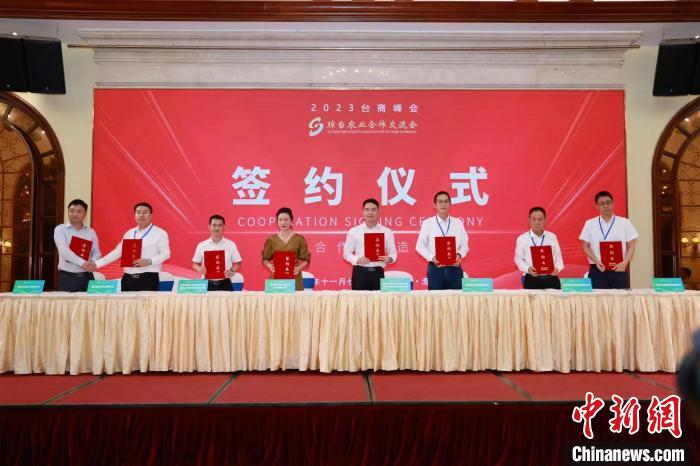 11月7日,2023臺(tái)商峰會(huì)瓊臺(tái)農(nóng)業(yè)合作交流會(huì)在海南澄邁舉行。圖為相關(guān)機(jī)構(gòu)和企業(yè)在會(huì)上進(jìn)行投資合作框架協(xié)議簽約。海南省農(nóng)業(yè)交流協(xié)會(huì)供圖