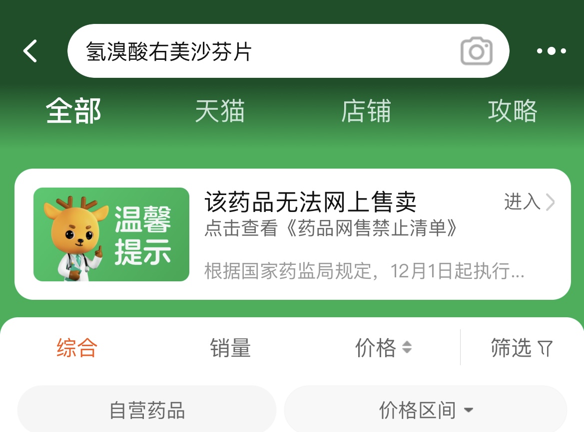 2022年12月1日,《藥品網(wǎng)絡(luò)銷售禁止清單(第一版)》正式施行,右美沙芬從此被網(wǎng)絡(luò)禁售。