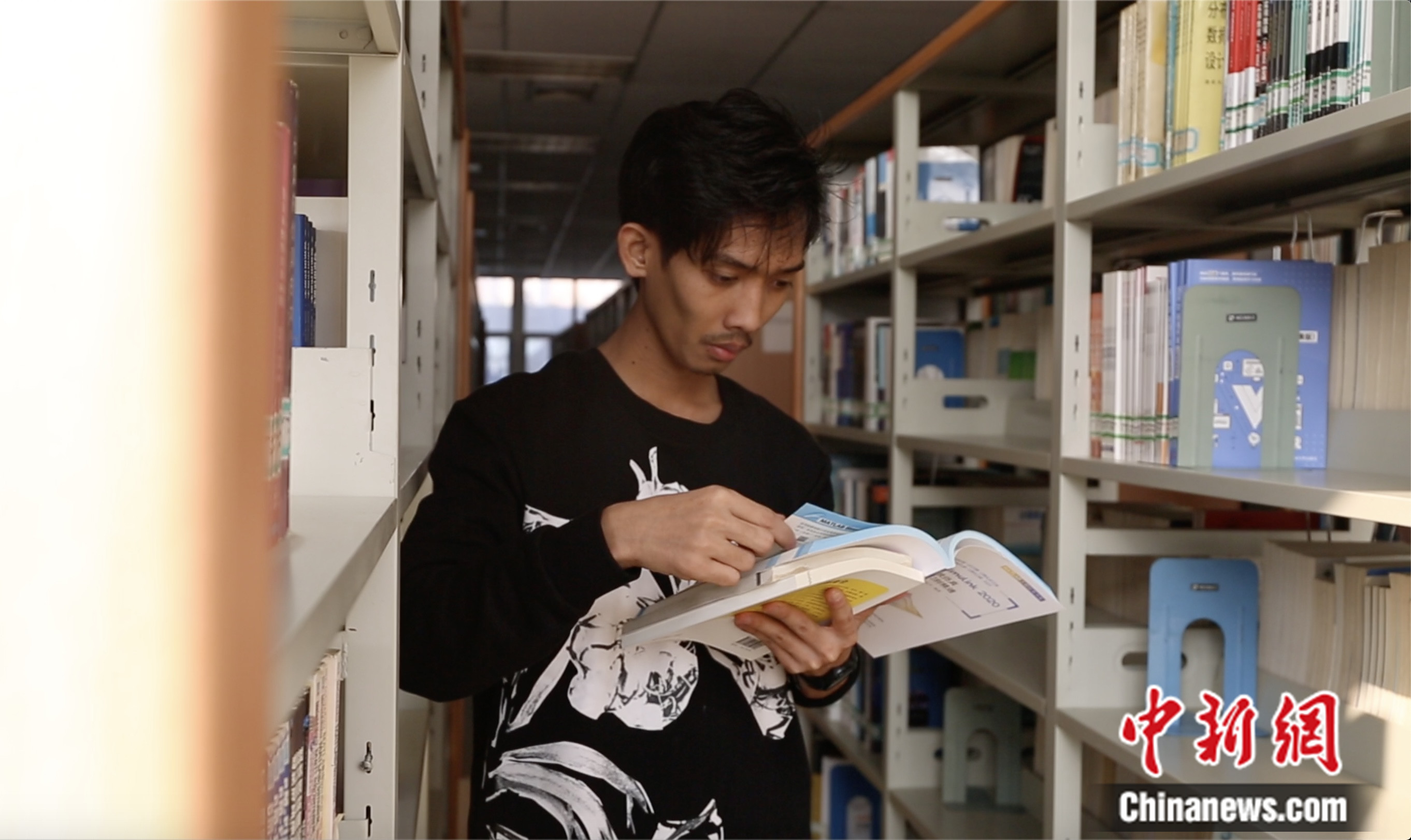 2023年10月,就讀于蘭州交通大學(xué)的留學(xué)生陳君其正在圖書館里自習(xí)。高瑩 攝