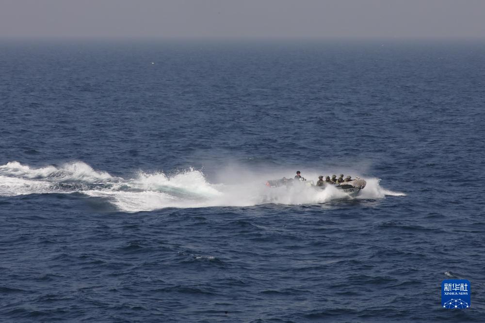 中巴“海洋衛(wèi)士-3”海上聯(lián)合演習(xí)在阿拉伯海北部海空域舉行,中國海軍荊州艦特戰(zhàn)隊(duì)員在臨檢拿捕演練中乘小艇前出(11月14日攝)。新華社發(fā)(姜霞攝)