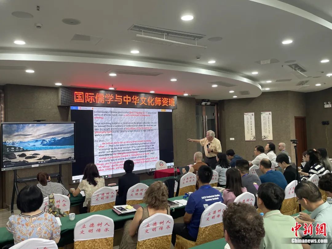 2023年8月15日,中西比較哲學家安樂哲在給學生們講課。李國慶 攝