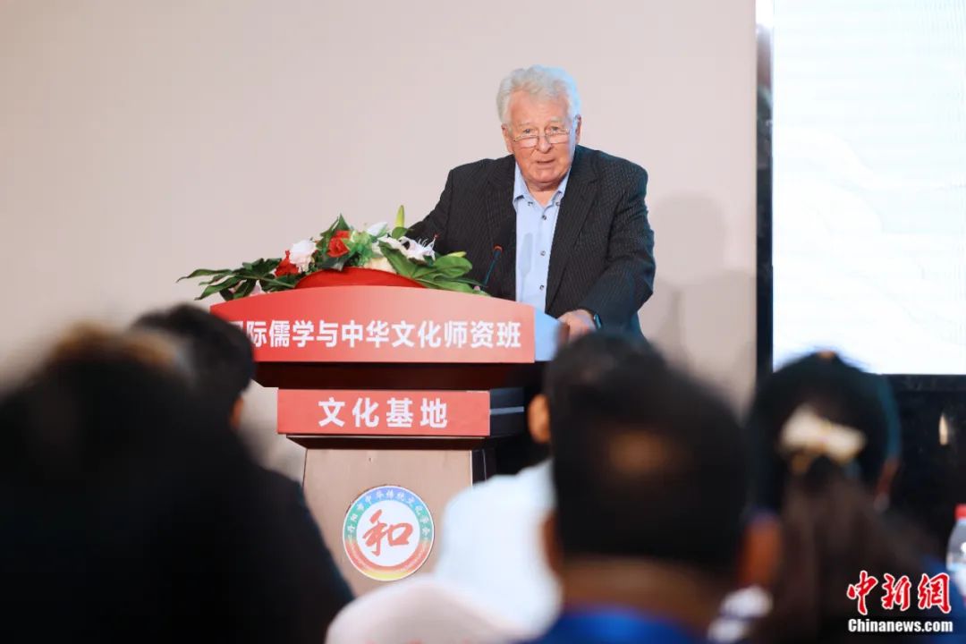2023年8月14日,中西比較哲學家安樂哲在活動現(xiàn)場致辭。李國慶 攝