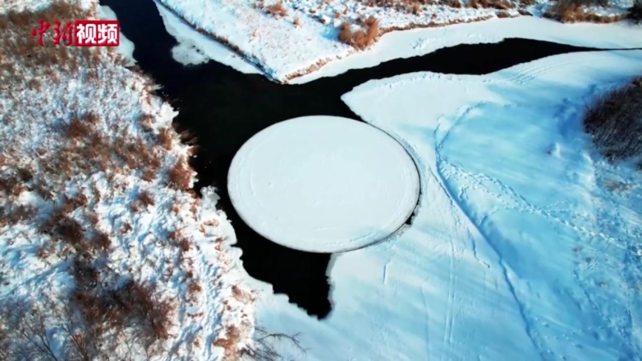 內(nèi)蒙古綽爾河上現(xiàn)直徑13.5米大“冰盤(pán)”